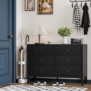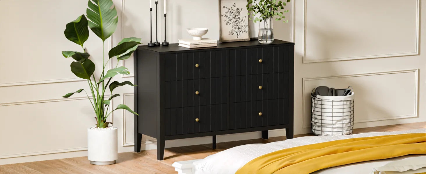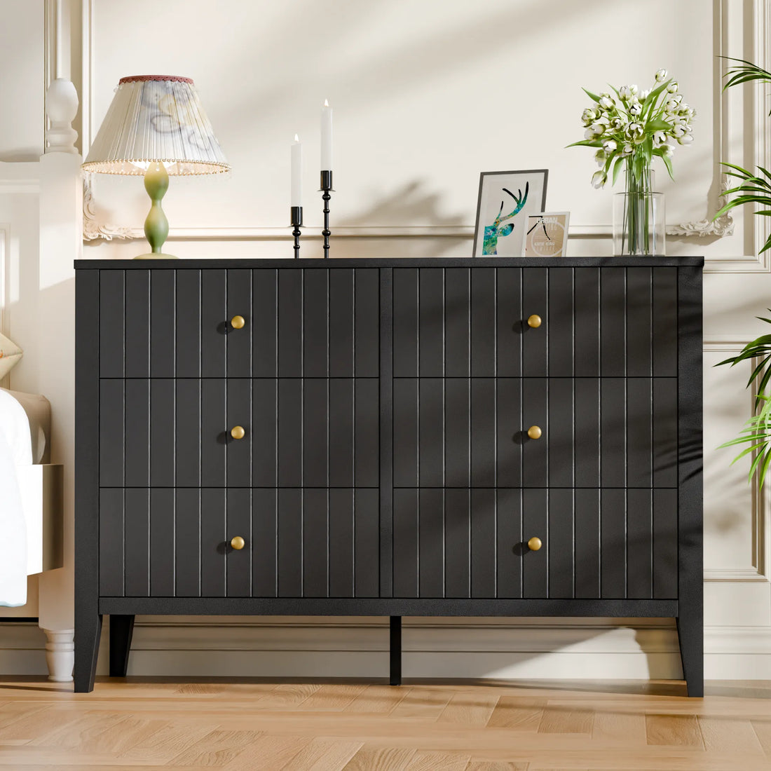 47" Dresser for Bedroom with Handle, Black Farmhouse 6 Drawer Dresser with Anti‑tip for Bedroom, Hallway
