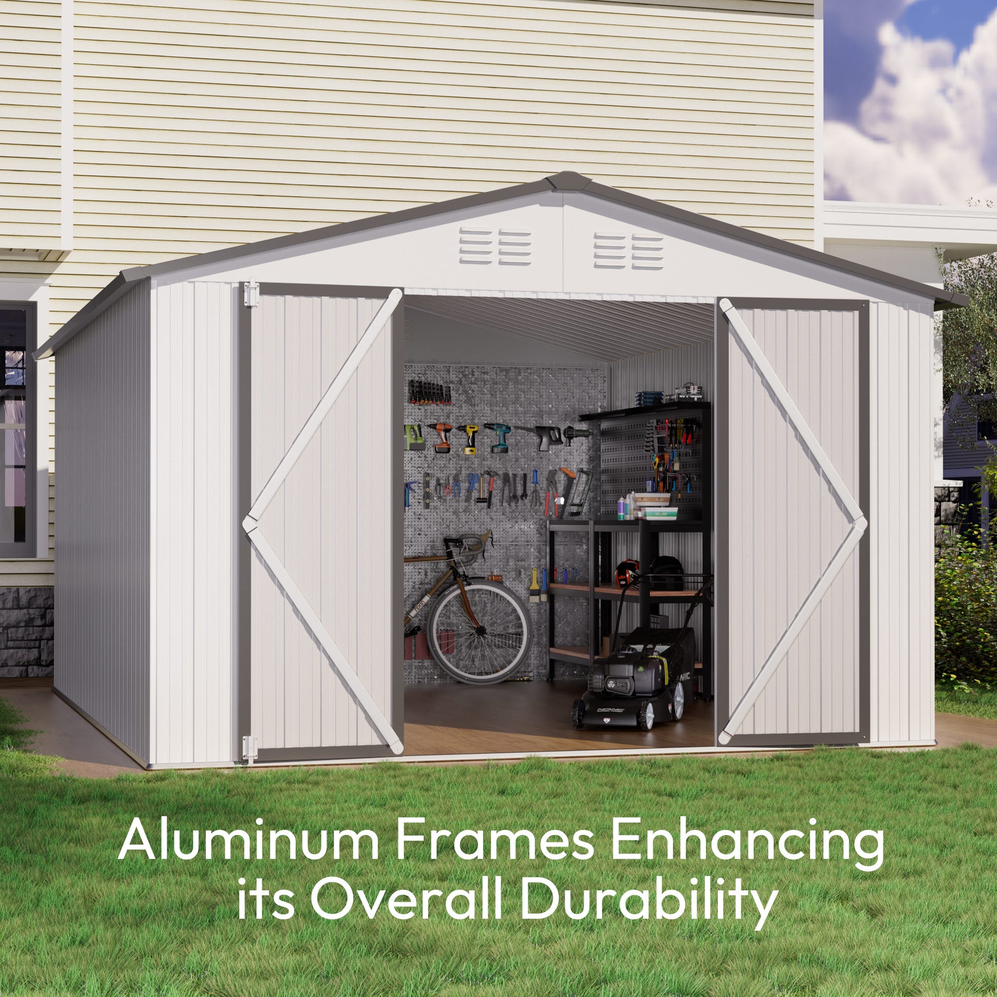 10 x 12 FT Storage Shed, Metal Sheds with Sloping Roof and Lockable Door, Outdoor Shed for Backyard Garden Patio and Lawn