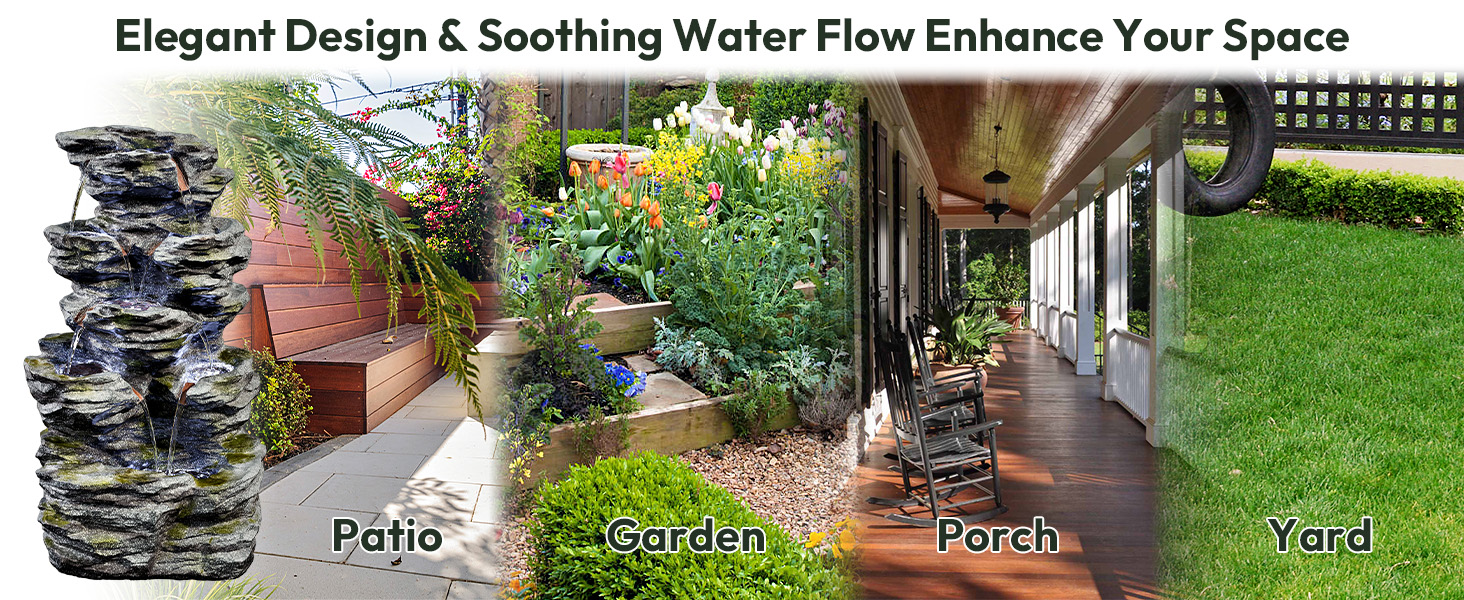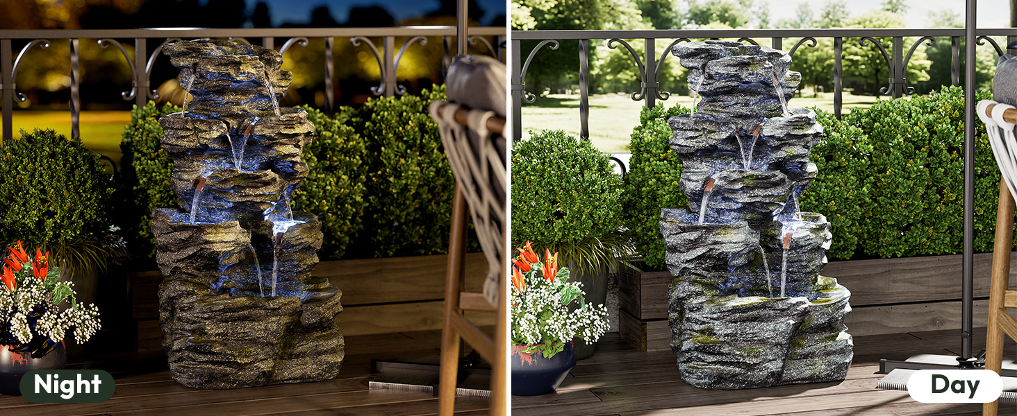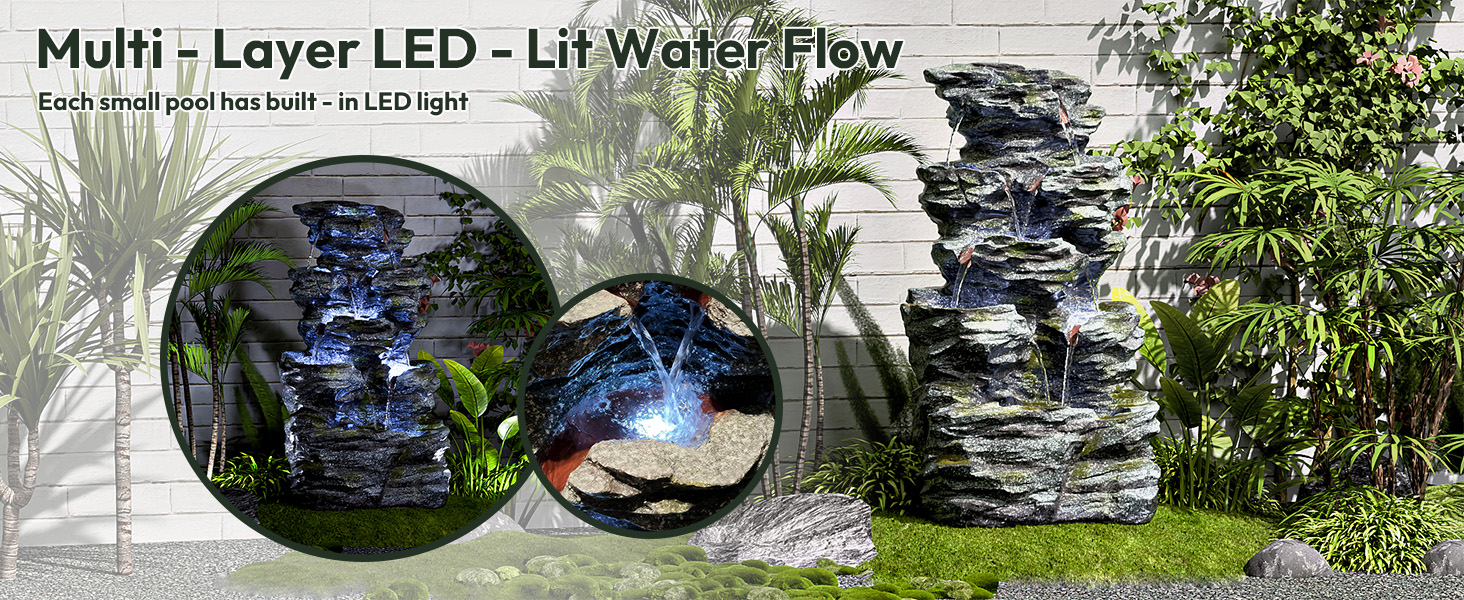 34.3" H Outdoor Water Fountain with LED Lights, 5-Tier Cascading Rock Waterfall for Yard, Garden, Patio, Outdoor Decor Water Features