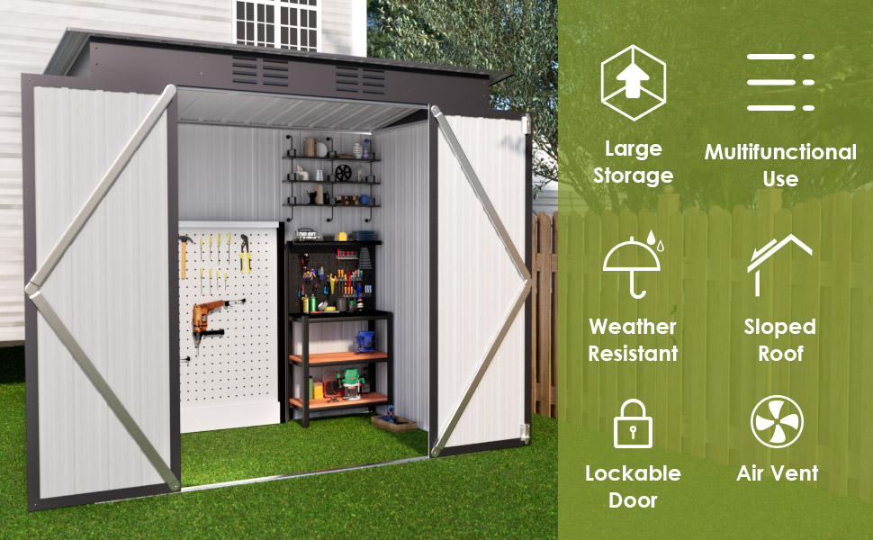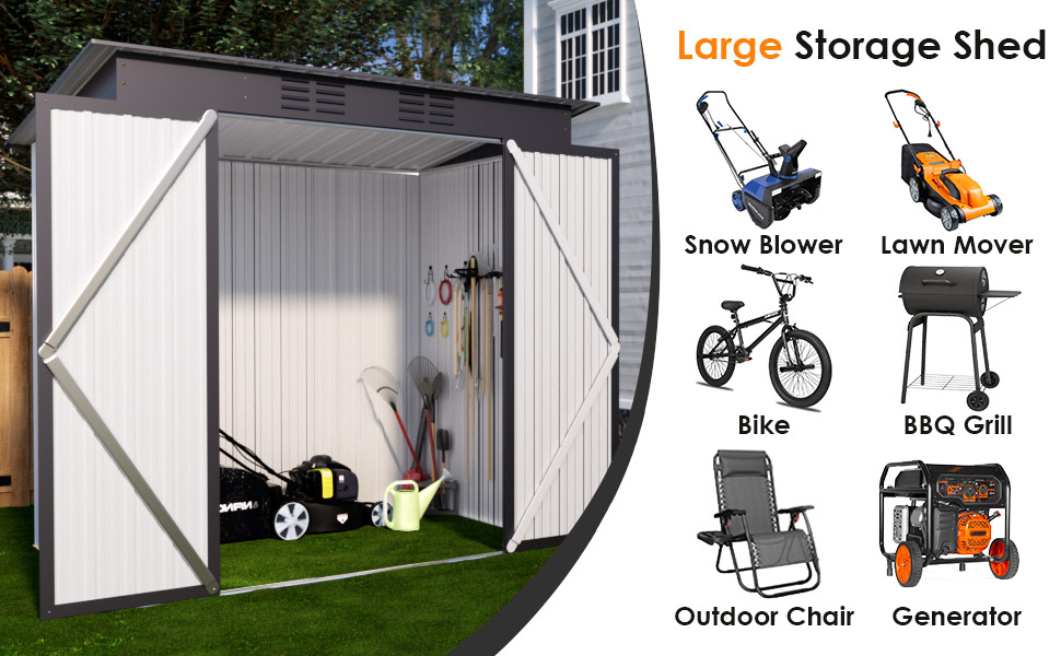 4 x 6 FT Storage Shed, Metal Sheds & Outdoor Storage with Sloping Roof and Lockable Door, Outdoor Shed for Backyard Garden Patio and Lawn