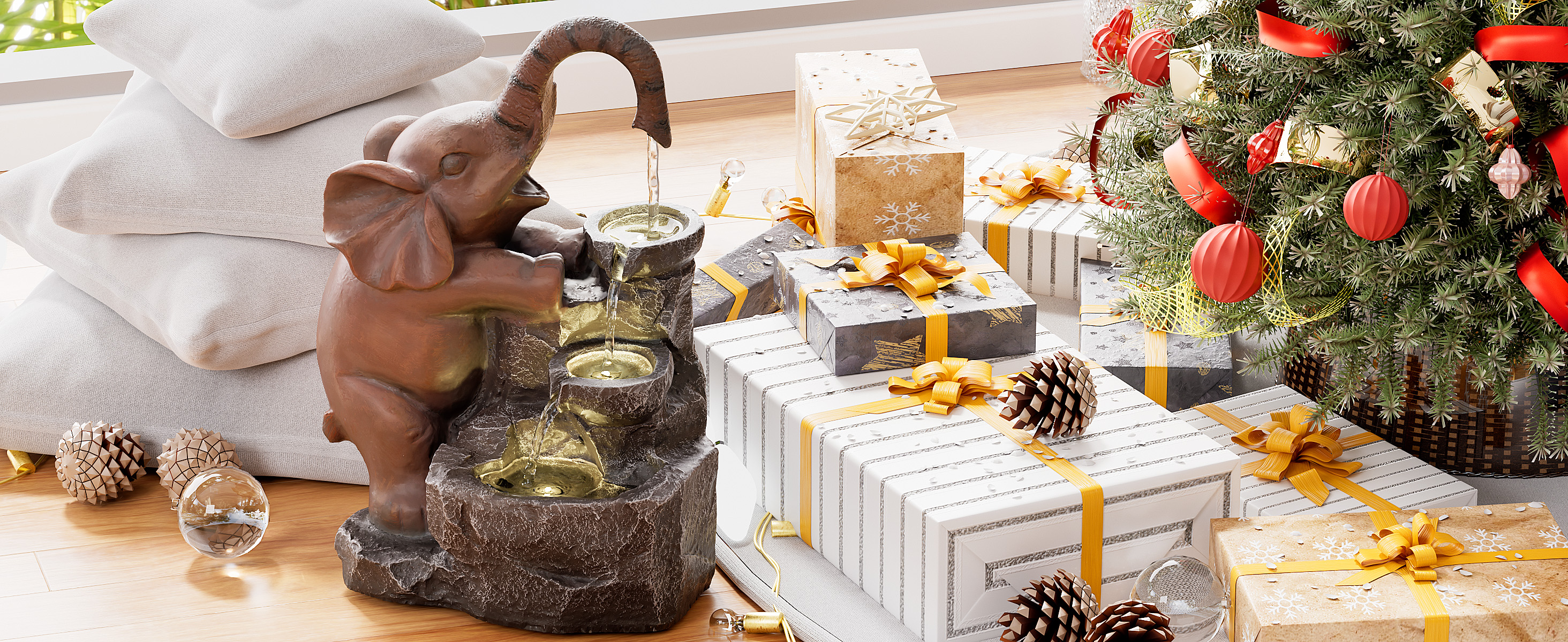Indoor Water Fountain, Desktop Water Feature of Elephant Sculpture, Cascading Animal Floor Standing Water Fountains for Home Office Yard Deck Patio Home Art Decor