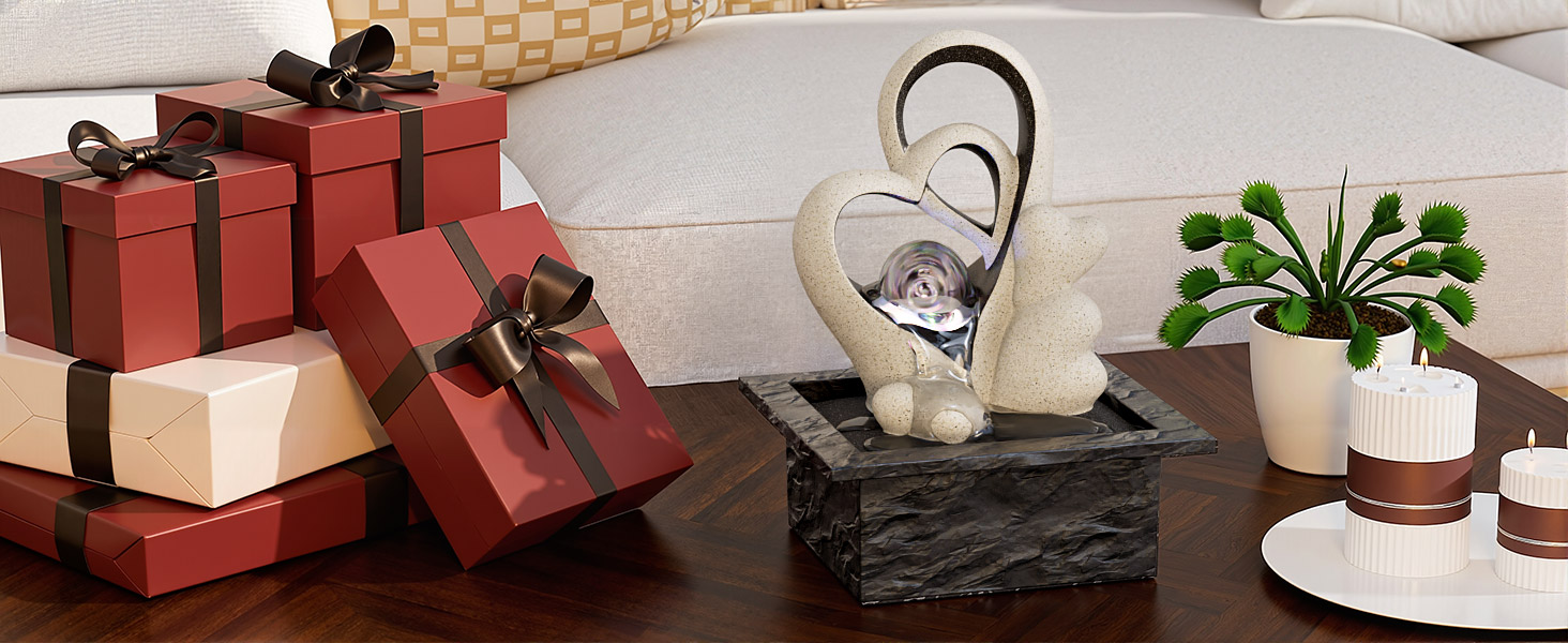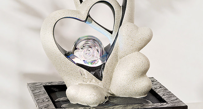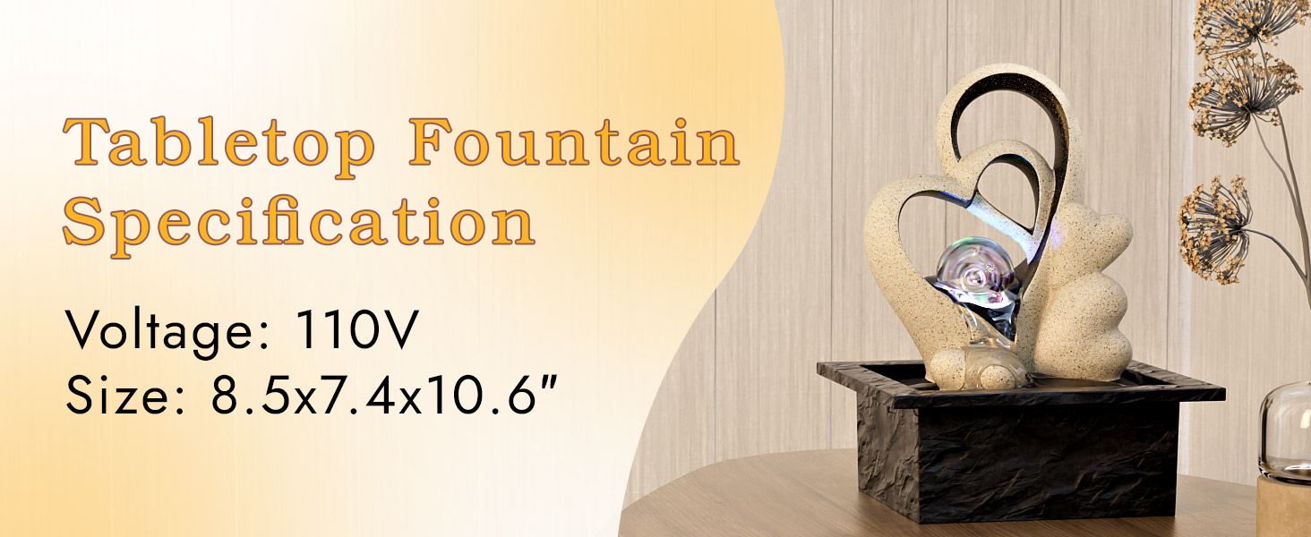 Tabletop Water Fountain, Indoor Desktop Waterfall, Zen Meditation Fountain with LED Lights Rolling Ball, Home Office Decor White