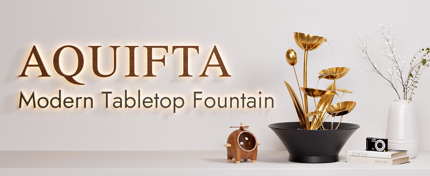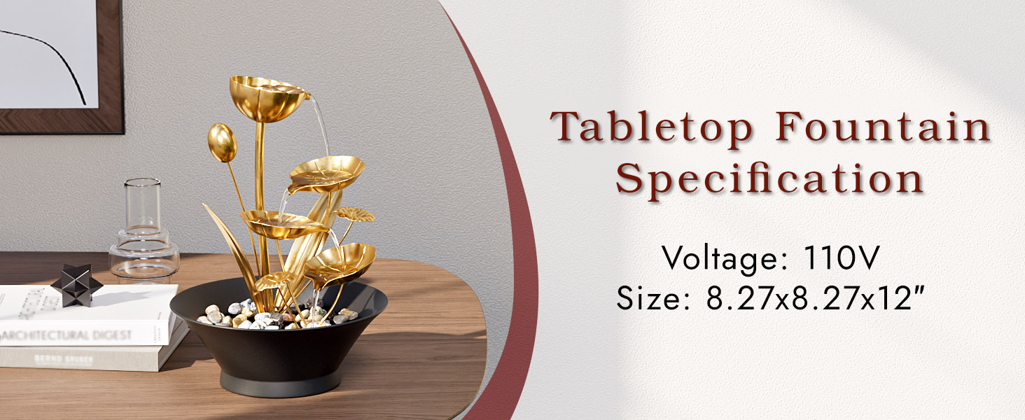 Tabletop Water Fountain, Indoor Waterfall Meditation Fountain with Golden Lotus Modeling & Natural Rocks, Home Decor for Office, Bedroom