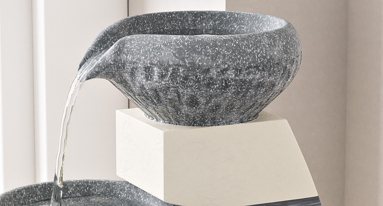 Water Fountains, Outdoor Floor-Standing Garden Waterfall Fountain, 4-Tiered Cascading Resin Fountain for Home Office Patio Yard Decor, Blue and White, 10.1" Lx8.7 Wx21.7 H